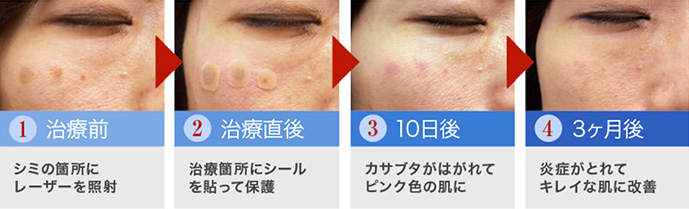 - 肝斑等几乎所有色斑、刺青(黒、青、茶、赤、紫、橙)、纹眉、毛孔粗大、暗沉、黑头、改善肤质